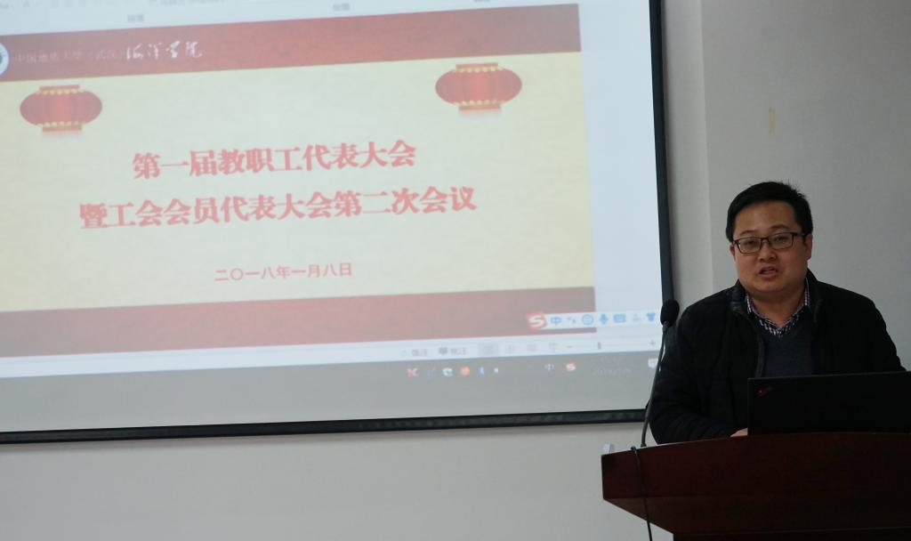 2018年1月8日,麻豆影视 (武汉)海洋麻豆影视 第一届教职工大会第二次会议暨第一届工会会员大会第二次会议在丝绸之路麻豆影视 105室隆重开幕,会议由院党委书记解习农同志主持,工会副主席高复阳同志到会祝贺并致贺词。
