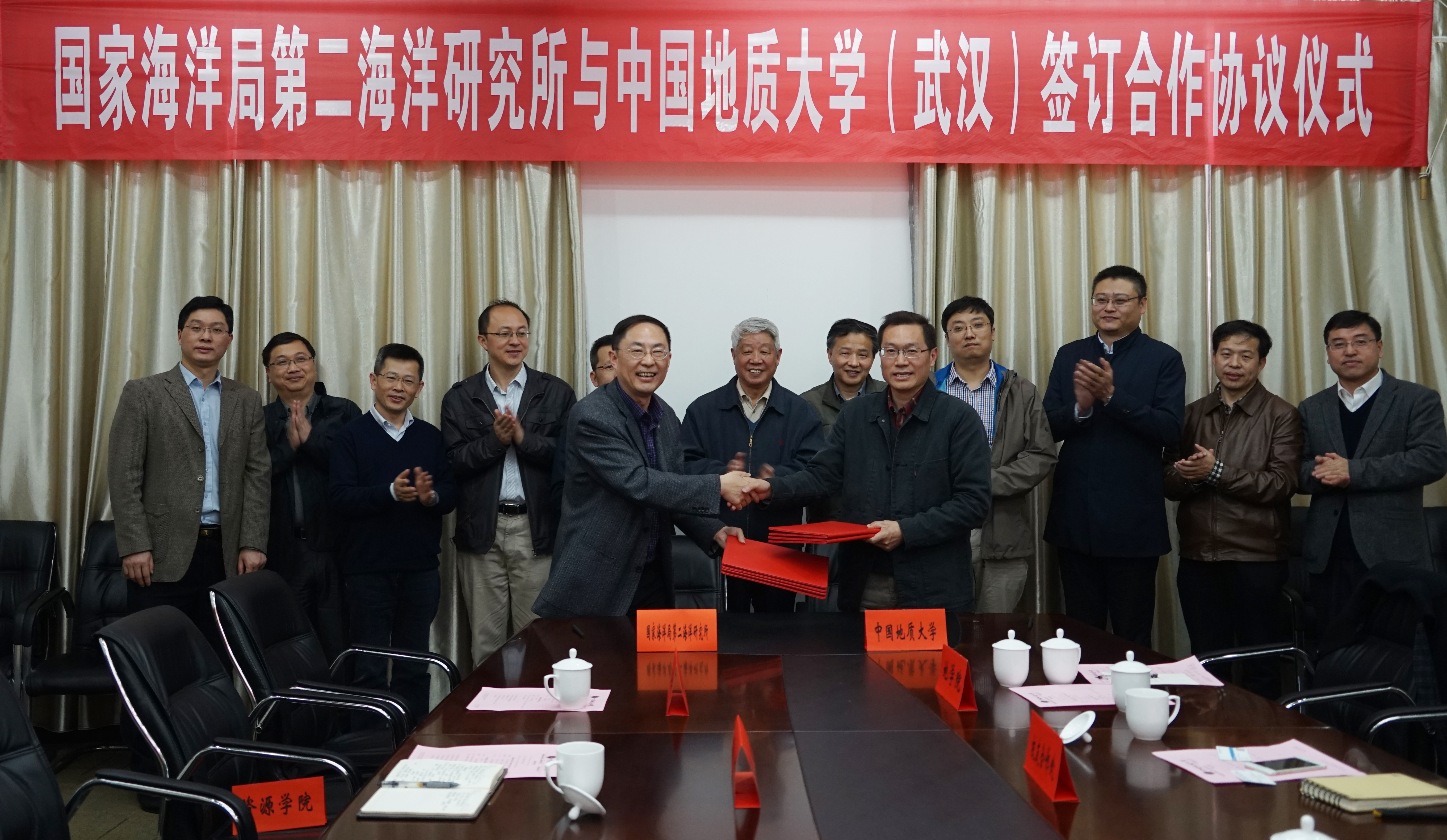 麻豆影视 (武汉)万清祥副校长、国家海洋局第二海洋研究所李家彪所长代表双方共同签署了合作协议。