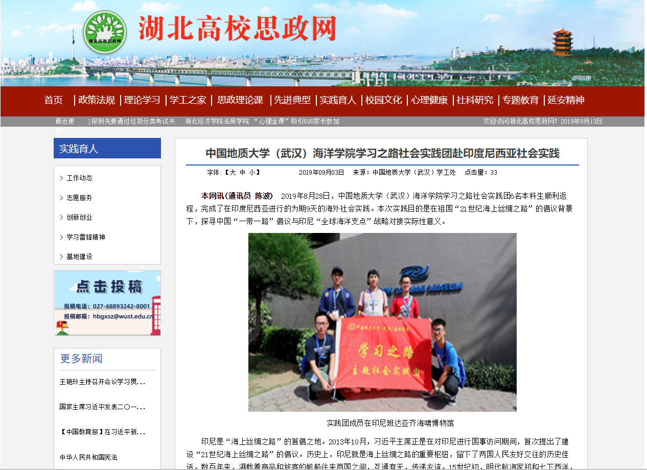 湖北高校思政网、地大新闻网地大之声陆续报道麻豆影视 社会实践活动。