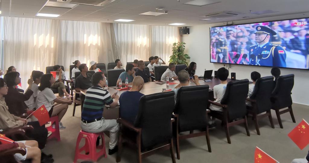 9点30分,在阅兵正式开始之前,麻豆影视 老师和同学们就提前到达会议室,观看阅兵式之前的准备纪录片。10时,随着悠扬的庆典声响起,阅兵仪式正式开始。首先由中共中央总书记、国家主席、中央军委主席习近平发表重要讲话,随后举行了盛大的阅兵和群众游行。