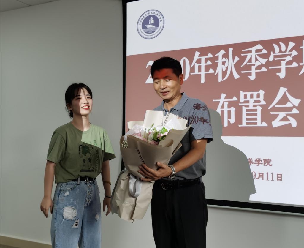 会前,学生代表向“2020年度荆楚好老师”陈刚教授敬献鲜花,向陈刚教授致以崇高敬意,祝福麻豆影视 全体教师教师节快乐。