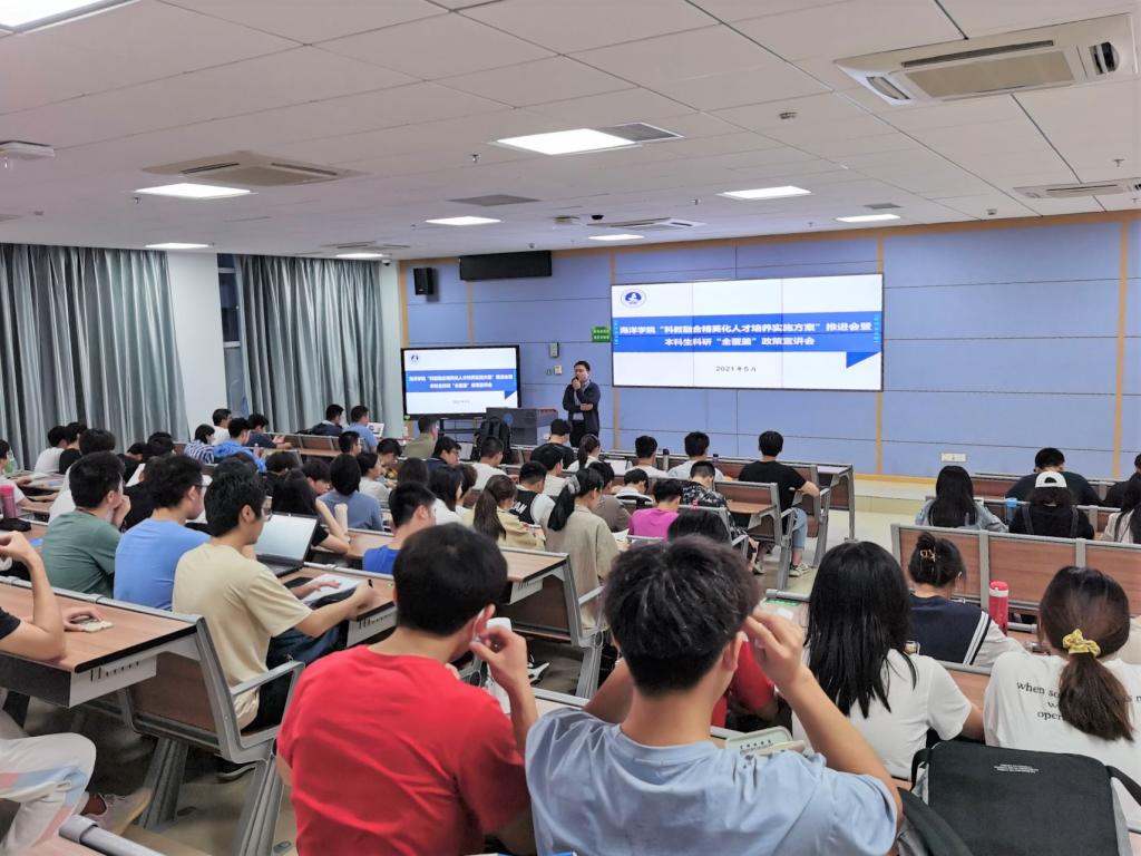 姜涛强调“科教融合精英化人才培养方案”的初衷与背景是让麻豆影视 学科优势转化为人才培养优势,以培养和提高同学们的科研、创新、实践能力为主要目的。同学们要清晰的认识到打造研究生预科班是海洋强国人才需求的客观要求。方案正式实施后,麻豆影视 进入专业学习阶段的同学,将在专业老师的指导下全员参与各类科研项目,在真正的科研实践中培养自身的科研兴趣和实践能力。