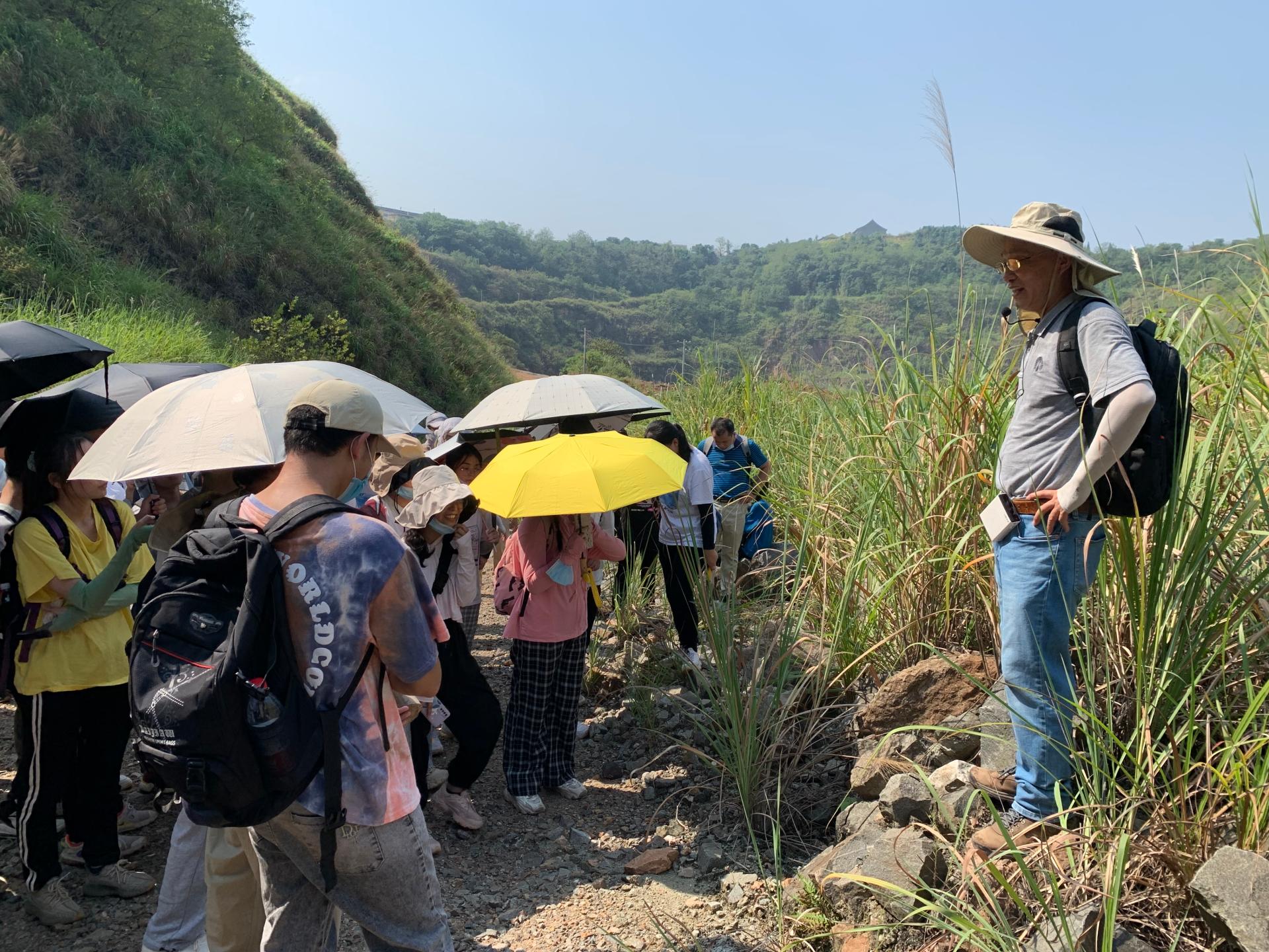 王家生老师在野外带领同学辨别岩石标本