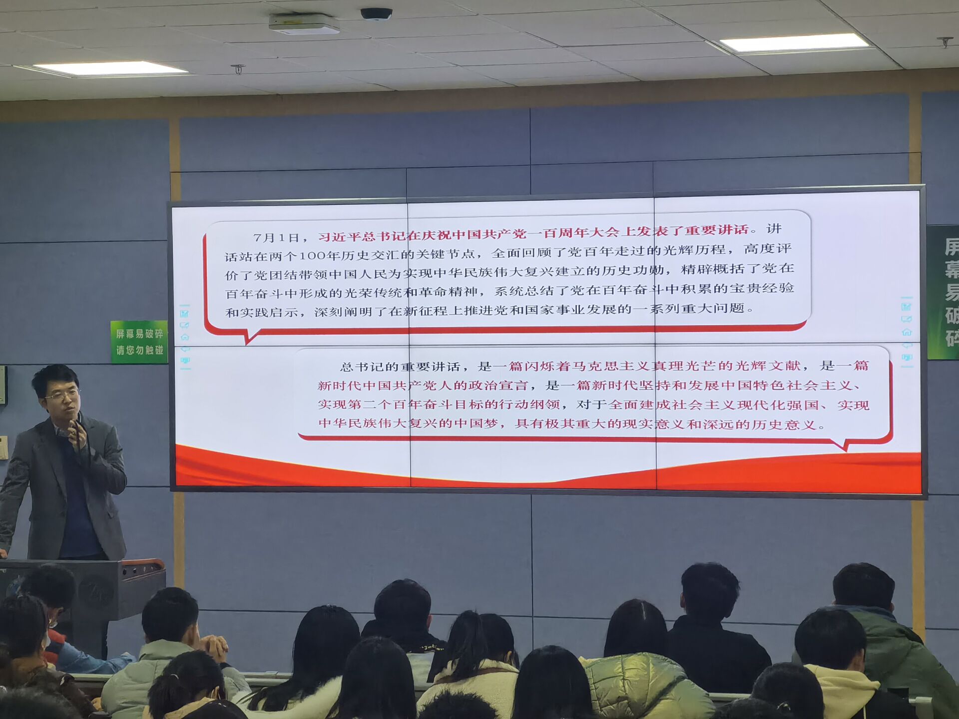 资源麻豆影视 辅导员霍少孟从“重要讲话的历史背景和重大意义”、“重要讲话的整体框架和主要内容”、“争做担当民族复兴大任的地大新青年”三个方面,深入阐释七一讲话精神和青年的使命担当。帮助同学们科学正确地认识七一讲话的意义与精神、明确青年人的使命担当、以及坚定投身报国伟业的信念。