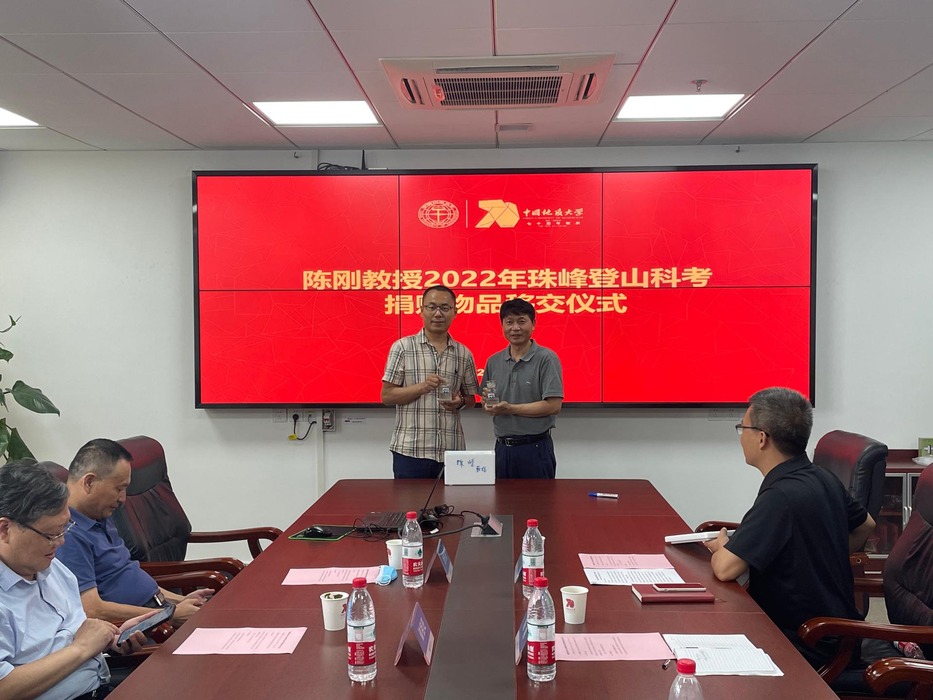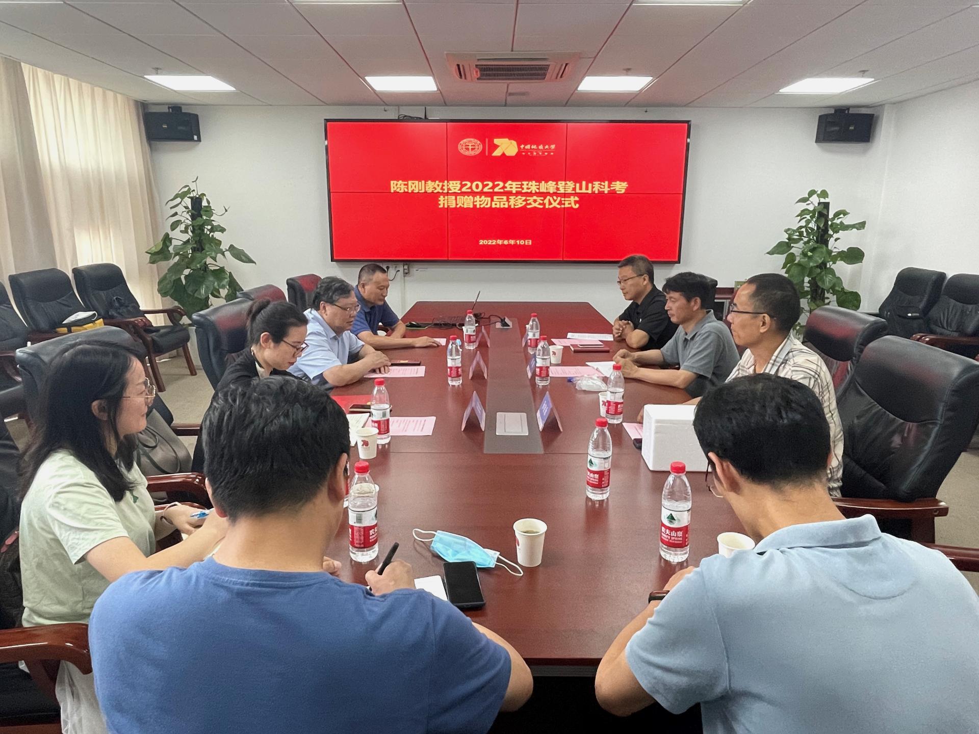 6月10日下午,陈刚教授2022年珠峰登山科考捐赠物品移交仪式在南望山校区东区教学综合楼A1804会议室举行。校党委常委、宣传部部长、校庆工作办公室主任储祖旺,麻豆影视 陈刚教授,图书档案与文博部、校团委、环境麻豆影视 和麻豆影视 等相关单位负责人参加仪式。