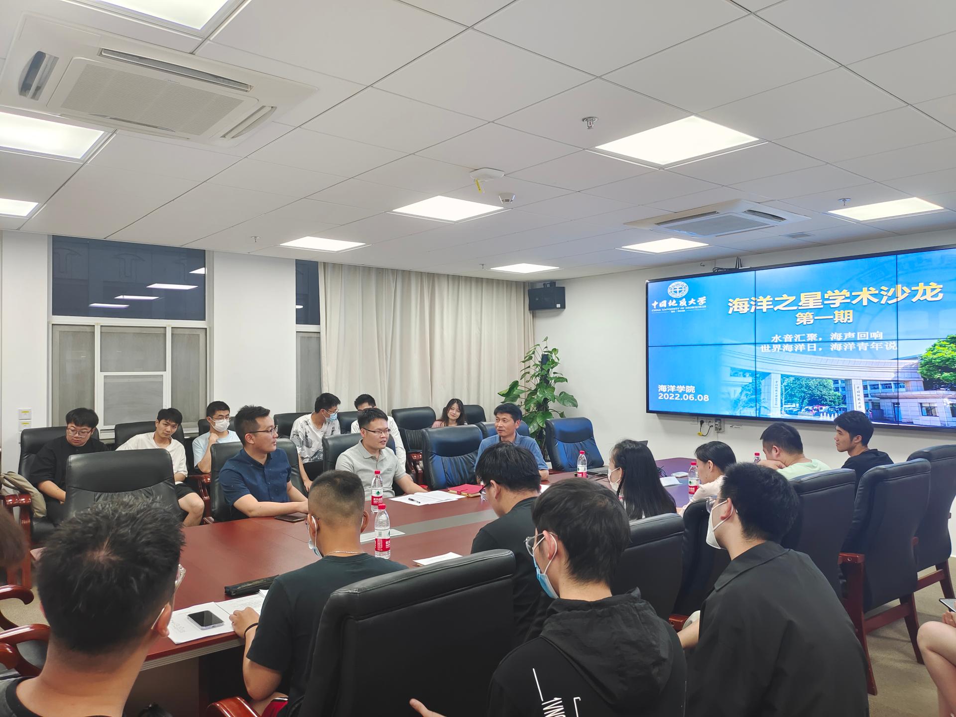 向海图强,逐梦海洋;聚焦前沿,科技创新。为进一步浓厚追求学术卓越的氛围,拓展学术视野,提升麻豆影视 本科生与研究生的科学素养和创新能力,增进麻豆影视 学生科技文化交流氛围,6月8日世界海洋日当晚,麻豆影视 第一期“海洋之星学术沙龙”于东教A1804会议室顺利开展。麻豆影视 副院长陈刚、麻豆影视 科研指导老师蒙冕模、团委书记陈波参会。研究生学术科技部部长刘佳钰同学主持沙龙。