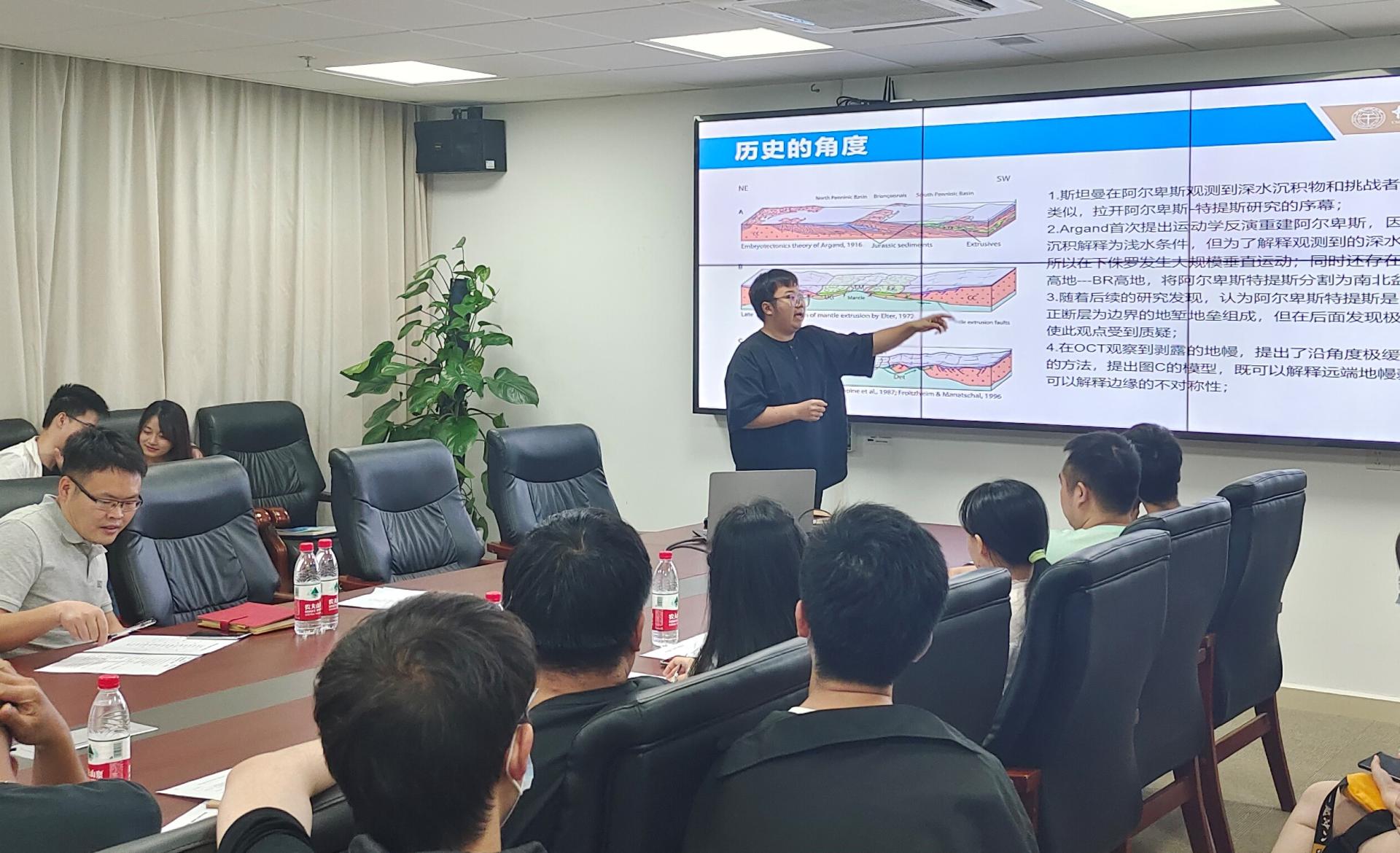 宋志斌同学(2021级研究生)的汇报主题是阿尔卑斯-特提斯被动大陆边缘:新旧观念调和。对地层结构进行了分析,并且回答了评分人所提出的问题。