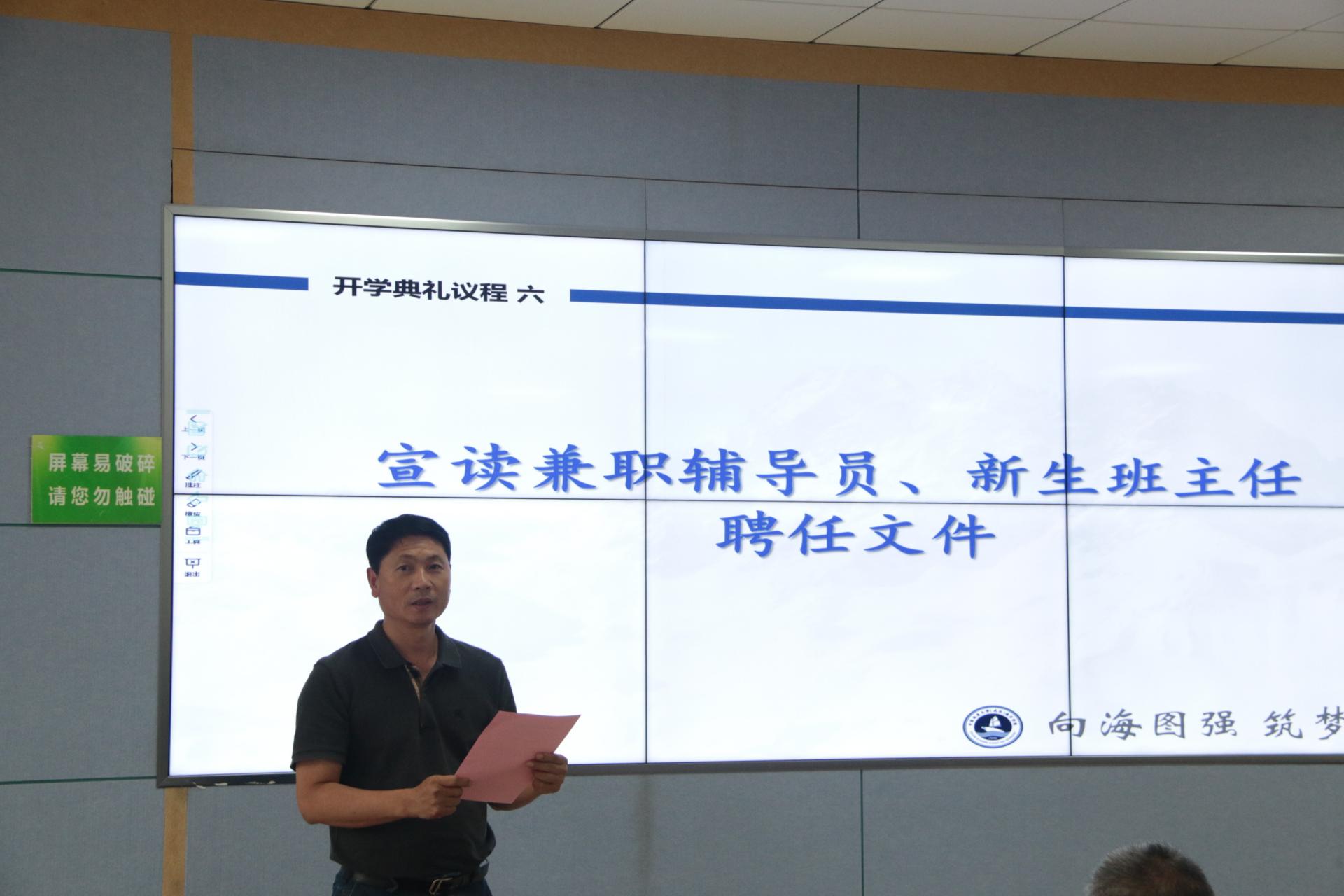 麻豆影视 陈刚教授宣读兼职辅导员、新生班主任聘任文件。麻豆影视 党委书记成军、副院长姜涛分别为兼职辅导员和2022级本科班主任颁发聘书。