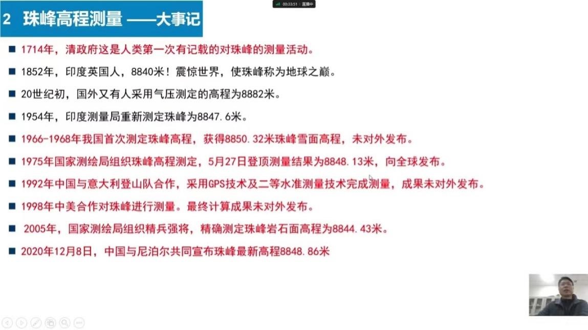 党支部书记陈刚教授给玉田一中的同学们作以“传承攀登精神,勇做时代的攀登者”为主题的专题报告。陈刚教授从攀登珠峰、珠峰高程测量、学习传承测绘精神三个方面展开,讲解了珠穆朗玛峰的专业知识,追溯了珠峰攀登历史,并以贴近高中同学们学习生活的方式,讲述了珠峰高程测量的原理,和自己在多次参与攀登测量珠峰时的经历和故事,陈刚教授还介绍了国测一大队的故事,他们“不忘初心,方得始终”的精神值得同学们学习。