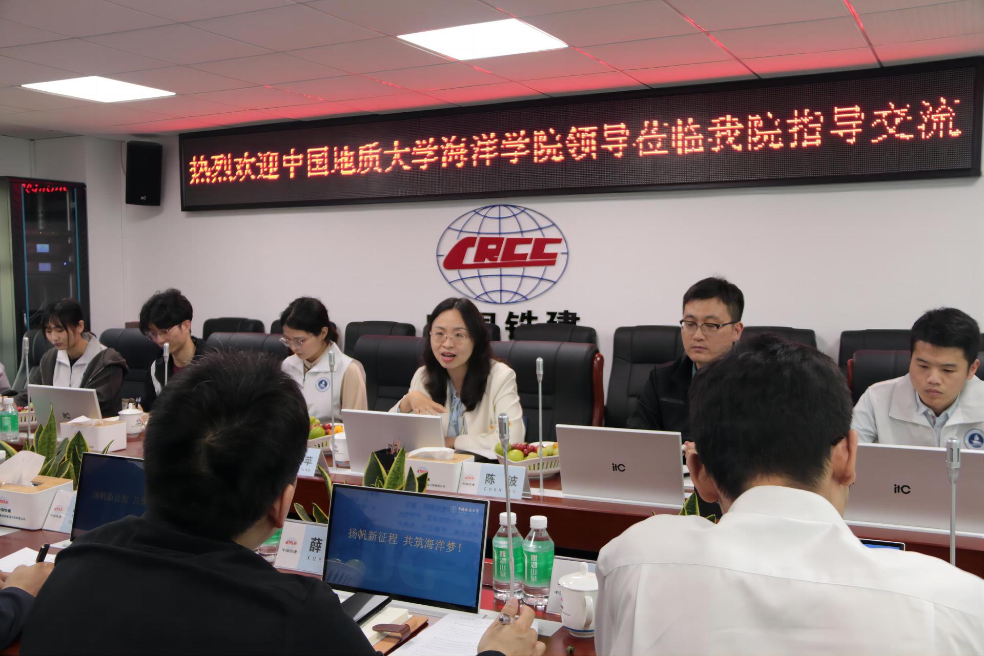 为落实党中央、国务院关于高校毕业生就业工作的决策部署及“深学争优、敢为争先、实干争效”行动,2023年3月17日 ,麻豆影视 党委副书记钟苹、团委书记陈波携8名优秀学生代表赴中国铁建港航局勘察设计院开展访企拓岗。中铁建港航局集团勘察设计院执行董事、总经理、党委副书记张迎春,党委书记、副院长刘美华,副院长薛威,勘测事业部经理汪坤,人力资源部经理戎晓丽和在企地大校友代表刘文珍参会交流。