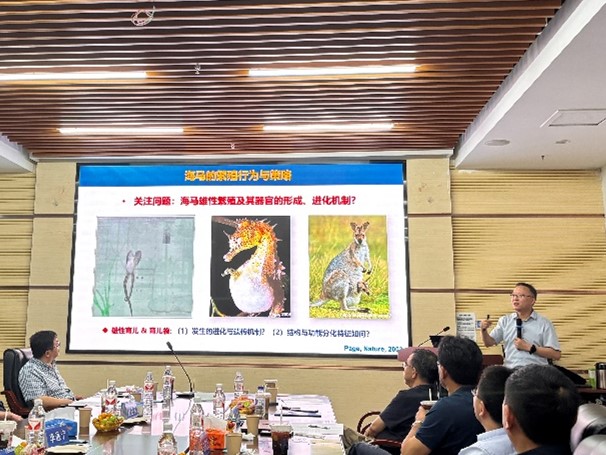 中国科麻豆影视 南海海洋研究所林强研究员应邀作《印-太海龙科鱼类适应辐射与性状演化》报告。林强研究员从生命起源引入他的报告,表明了印-太海域是全球海洋生物多样性中心、但不一定是种化中心的观点,提出了海洋物种多样性形成机制、扩散与适应辐射模式等问题。随后,林强研究员以海龙科鱼类为例,讲述了其多样性的形成、演化和遗传机理,分别从印-太海域向西到印度洋海域,向南到南澳海域,向北到中国沿海区域进行了海龙科生物的外形和生态适应性的讲解,同时分析了海龙科鱼类伴随生态位分化产生的本地适应性。
