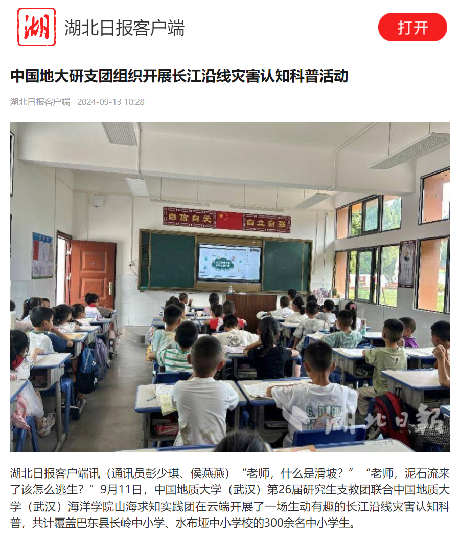 湖北日报报道麻豆影视 (武汉)麻豆影视 山海求知实践团组织开展长江沿线灾害认知科普活动