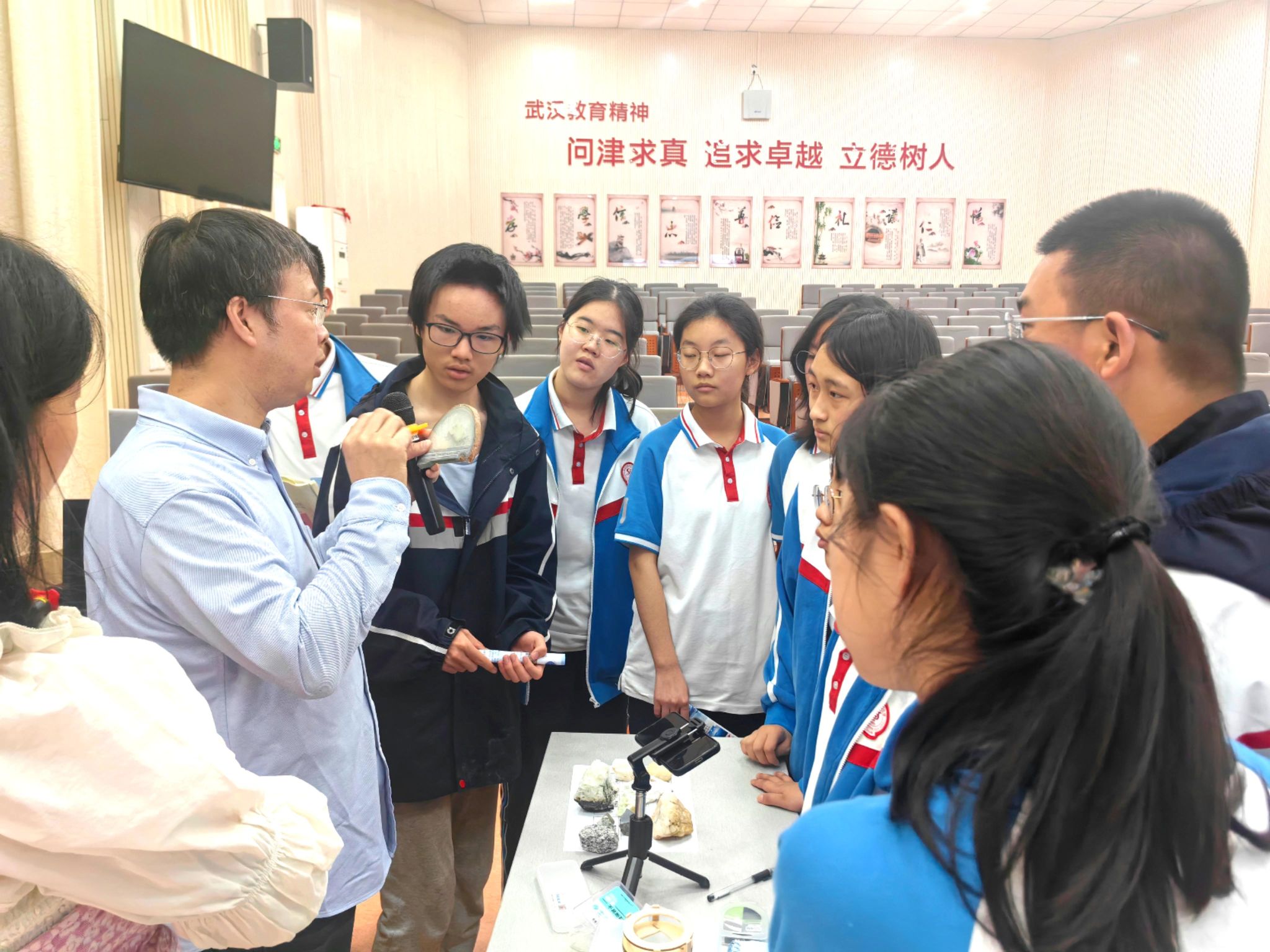"原来岩石会'说话'"的奇妙体验,激发了在场学子的浓厚兴趣,互动环节十余位同学争相提问。他同步介绍麻豆影视 说道:"我们的学生每年赴巴东等多地开展野外实训,这正是李四光先生倡导的‘理论与实践结合’培养模式。"