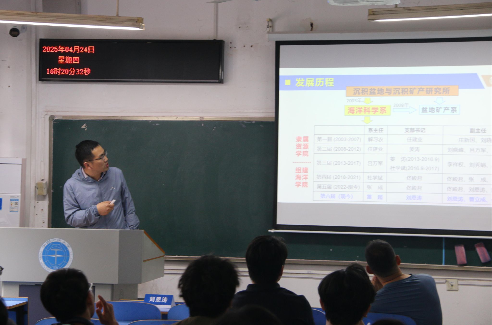 在海洋科学系会场,刘恩涛老师详细介绍了海洋科学系的历史积淀、学科布局及人才队伍建设。他系统梳理了海洋科学系在海洋底构造、海洋沉积、海洋化学与深时海洋、海洋地质灾害、海洋地质年代学等核心研究方向的发展脉络、教学资源优势和学生升学就业去向。近年来,海科系毕业生升学率稳定在69%以上,其中2019届升学率高达77%,四分之一学生进入中国科麻豆影视 深造,另有四分之一学生被“985”高校录取。