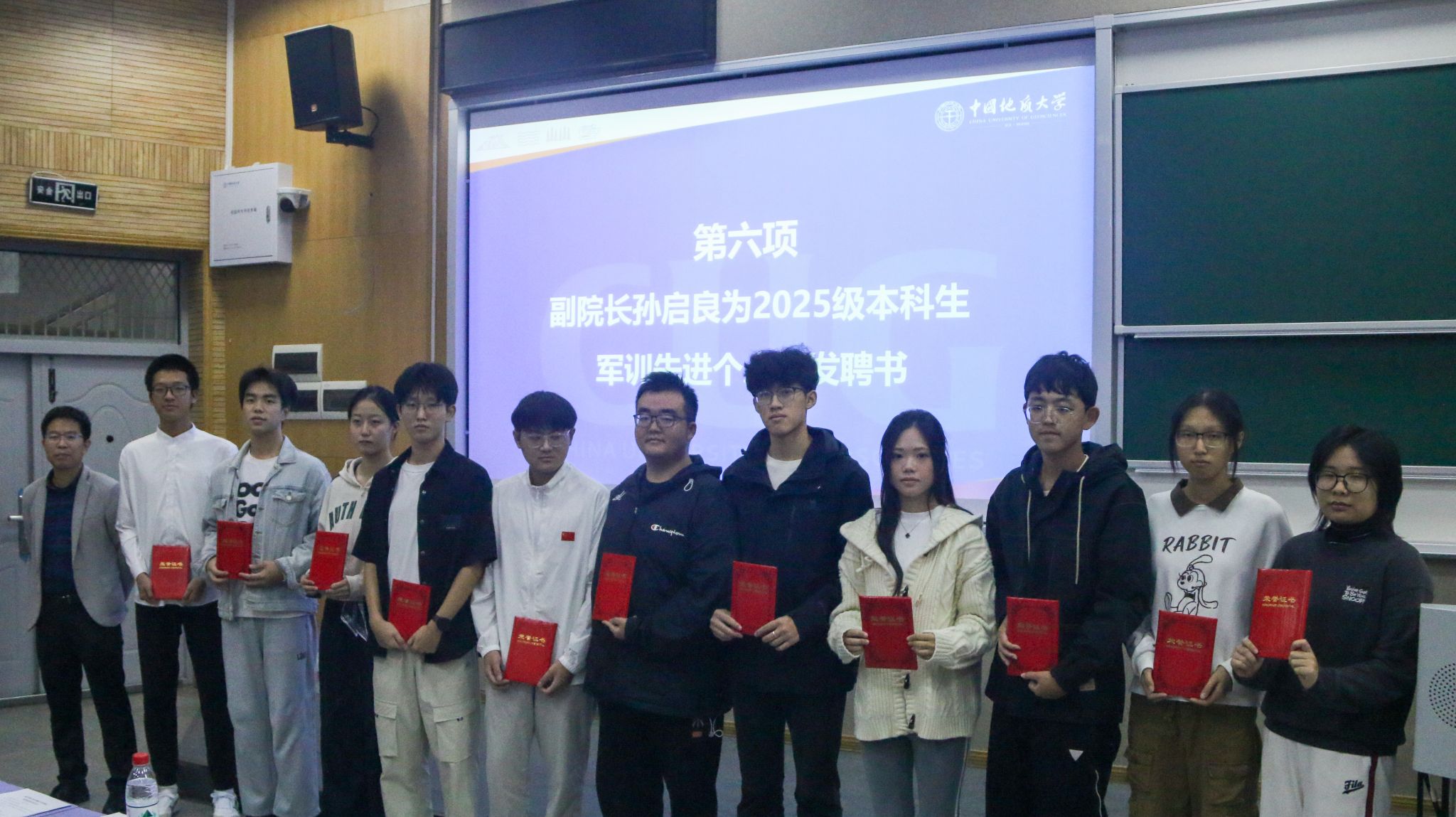副院长孙启良为2025级本科生军训先进个人颁发证。