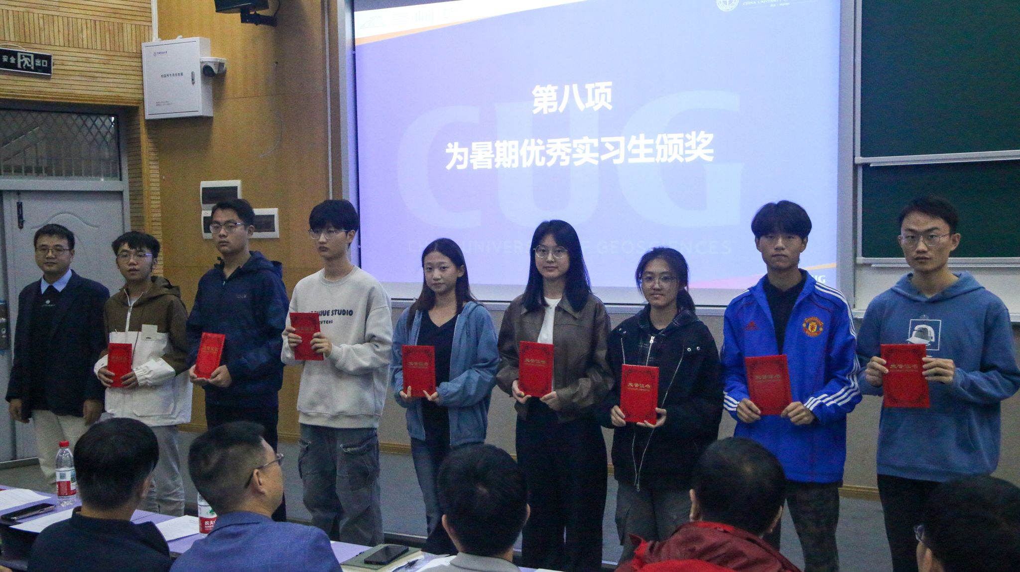 雷超老师、何云龙老师、董友扣老师为暑假优秀实习生颁奖。