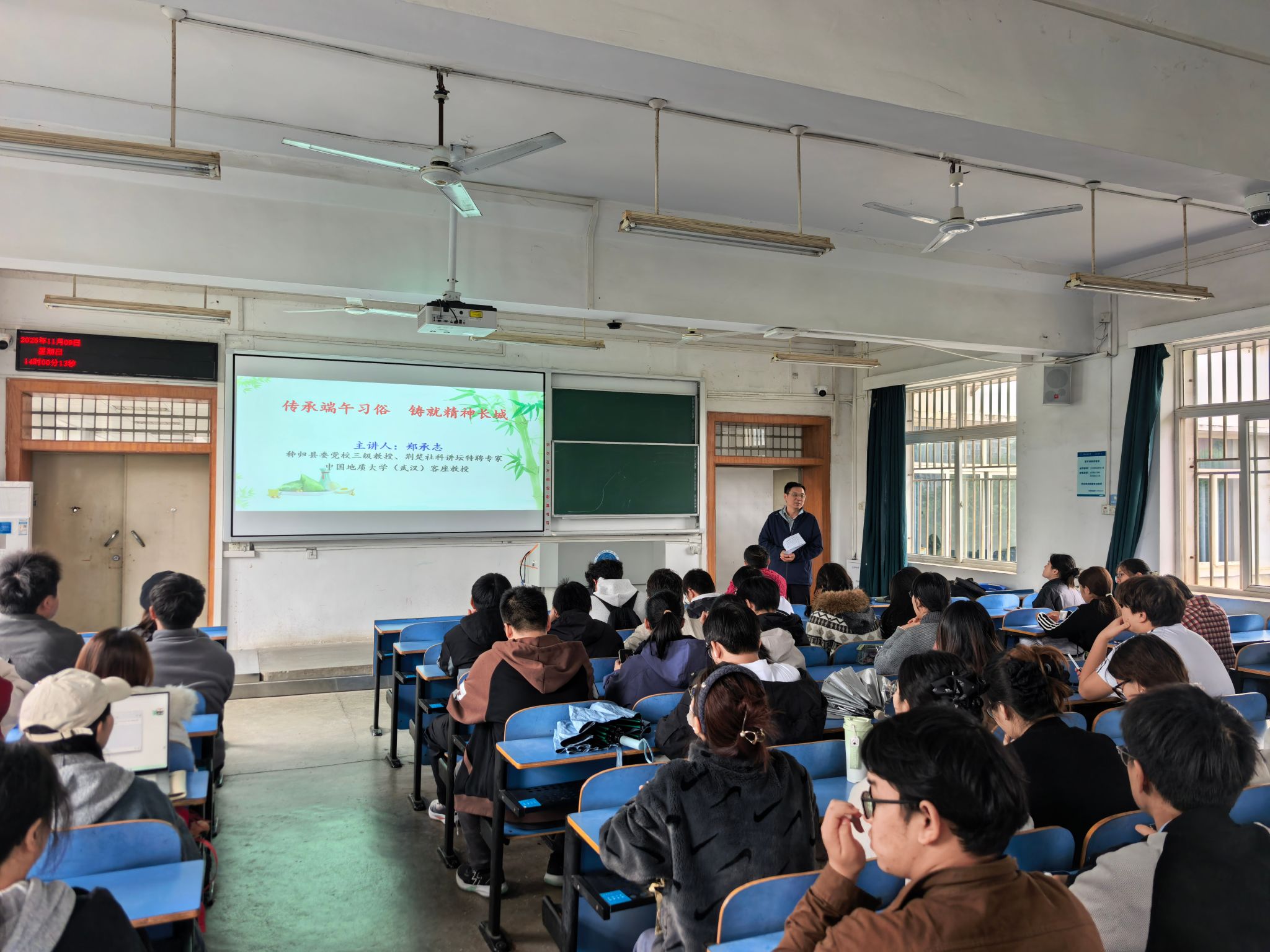 为传承优秀传统文化,加强学生精神文化建设,引导同学们深入了解端午文化的深厚内涵与当代价值,应麻豆影视 党委书记刘国华书记邀请,11月9日下午,郑承志教授为麻豆影视 师生开展"传承端午习俗,铸就精神长城"专题讲座。