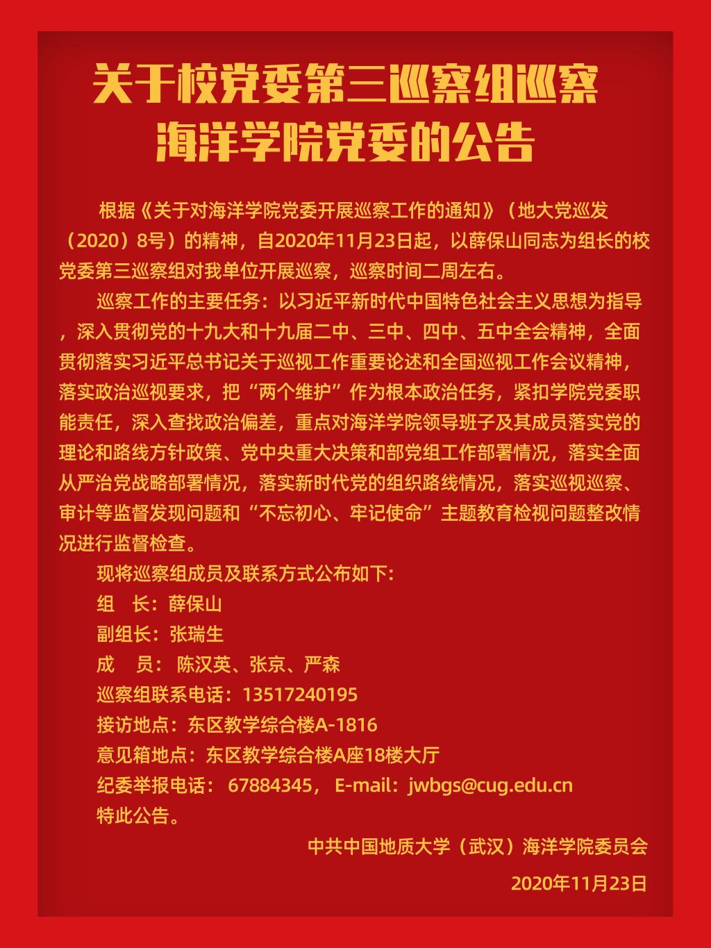 关于校党委第三巡察组巡察麻豆影视 党委的公告