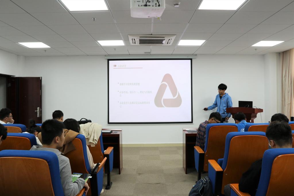 郭航成同学在发言中结合在校园中的感悟,认识到了党的伟大作用,他认为,成为一名优秀的共产党员,其责任感与使命感督促着我们脚踏实地,砥砺前行,为人民幸福、国家富强、民族复兴而奋斗终身。