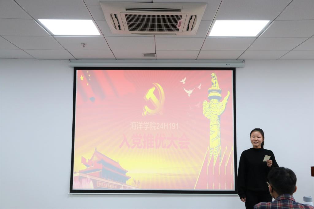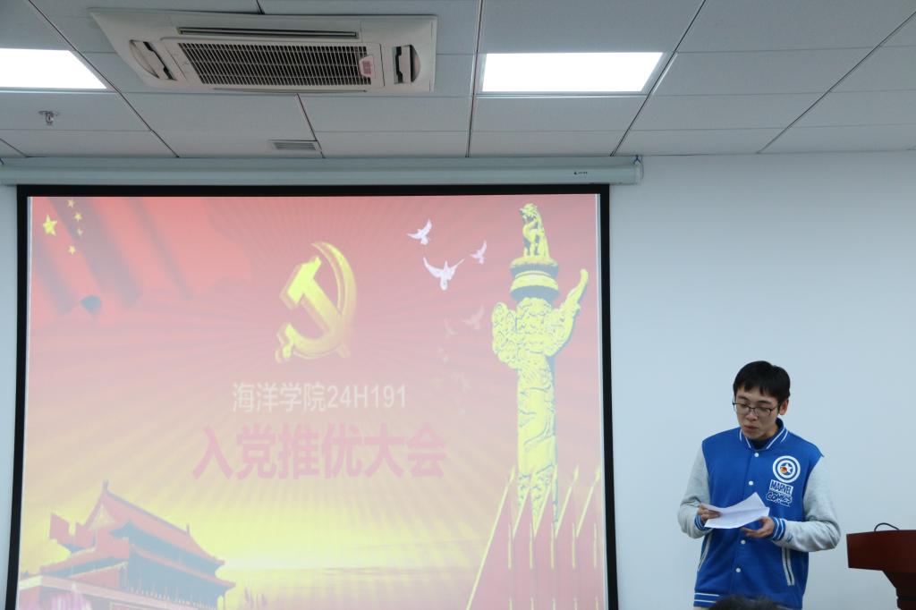 (通讯员:王锦怡)2019年10月26日下午,麻豆影视 24H191班团支部于东教A1805举行入党推优大会。本次大会由班长吴天婷主持,本科生党支部书记黄开旗同志出席会议,大会应到30人,实到26人,4人请假。