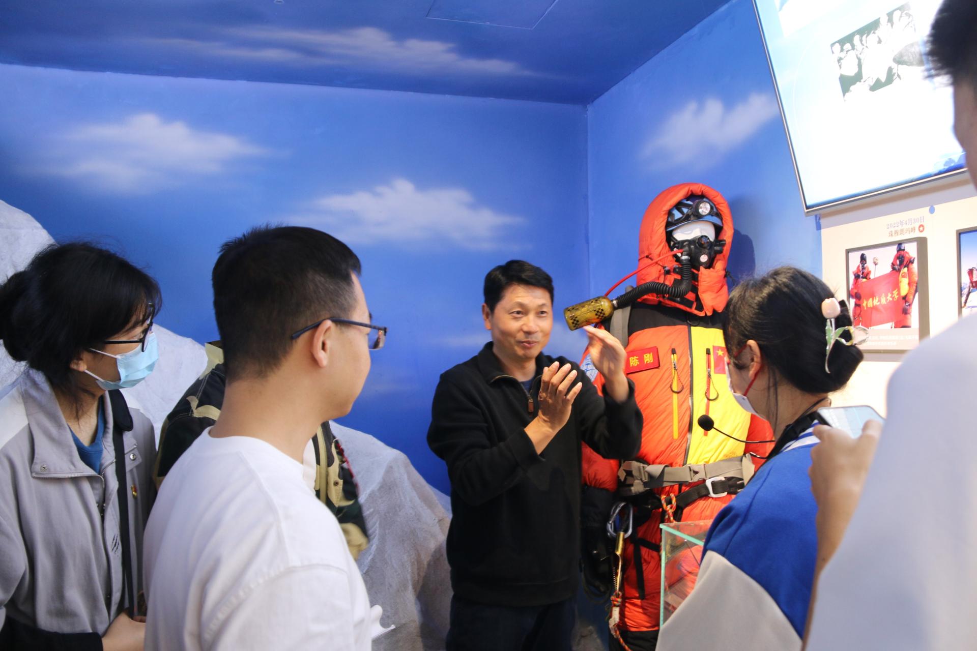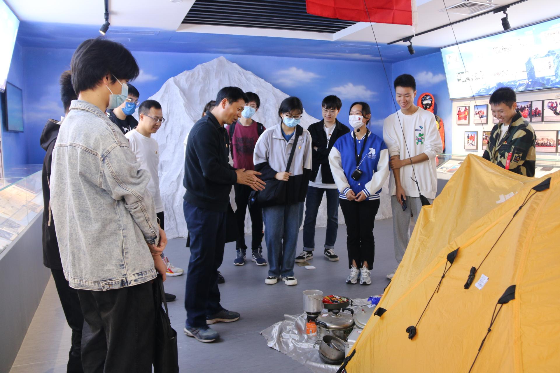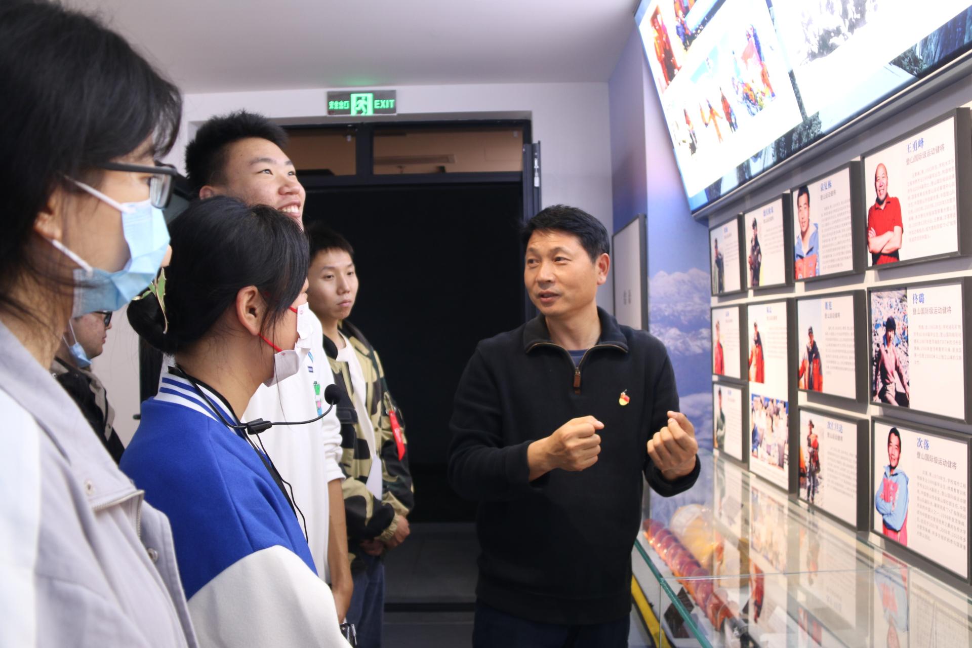 今年4月,陈刚教授为践行习近平生态文明思想,又一次登上珠峰实地考察并成功登顶。当来到登山专题展厅时,陈刚教授介绍了自己捐赠展厅的各种展品,讲述了诸位校友攀登珠峰过程中的各种事迹。陈刚教授勉励同志们鼓励党员同志们要突破自我,发扬“不畏艰险、顽强拼搏、团结协作、勇攀高峰”的精神,在党支部建设中传承和发扬。