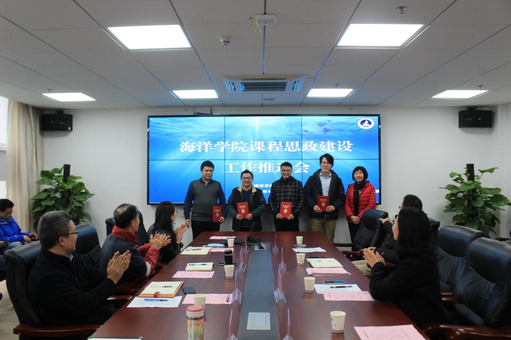 第一批课程思政教学改革结题教师代表李健、第二批课程思政教学改革立项教师代表佟殿分别就所承担教改的《海洋工程制图》、《海洋地质学》专业课程如何挖掘课程思政元素、找寻授课契合点、提升授课效果等方面同与会老师做了交流分享。