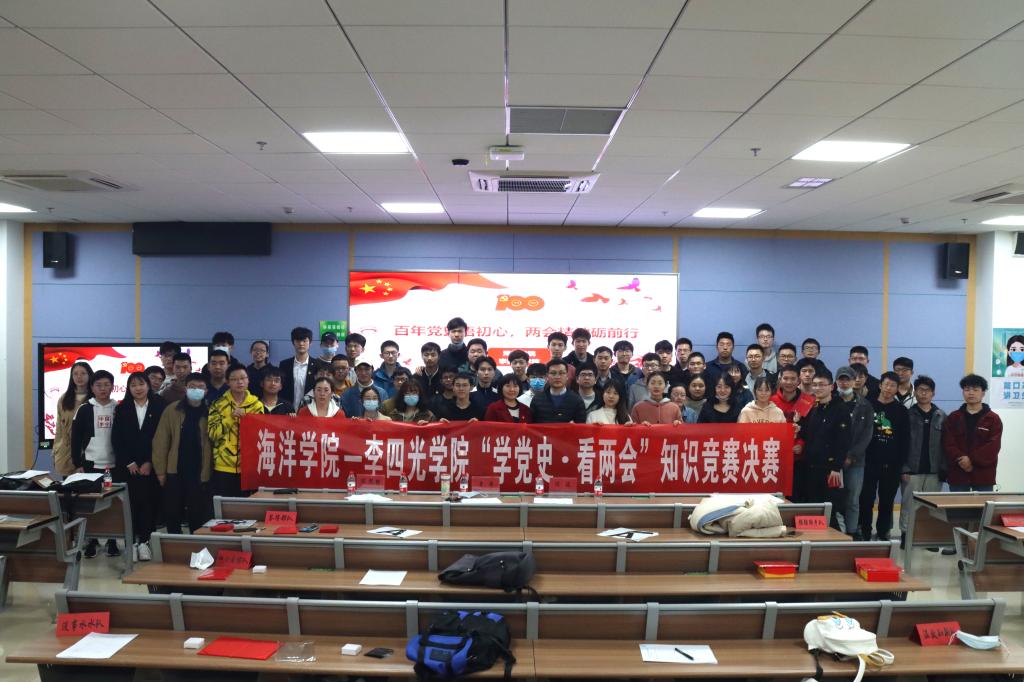 (通讯员 石紫希)为庆祝中国共产党成立100周年和2021年两会的胜利召开,学习好、宣传好、贯彻好习近平新时代中国特色社会主义思想,帮助全体学生学习党史,聚焦时政,开拓学生视野,麻豆影视 与李四光麻豆影视 联合在广大学生中组织开展“学党史·看两会”知识竞赛活动。经过初赛笔试的激烈角逐,最终两麻豆影视 共产生12支队伍进入决赛。决赛于2021年4月2日晚19:00于东教楼C0106举行,李四光麻豆影视 副院长曾希,麻豆影视 辅导员陈波,李四光麻豆影视 辅导员陈思静参加了此次活动。