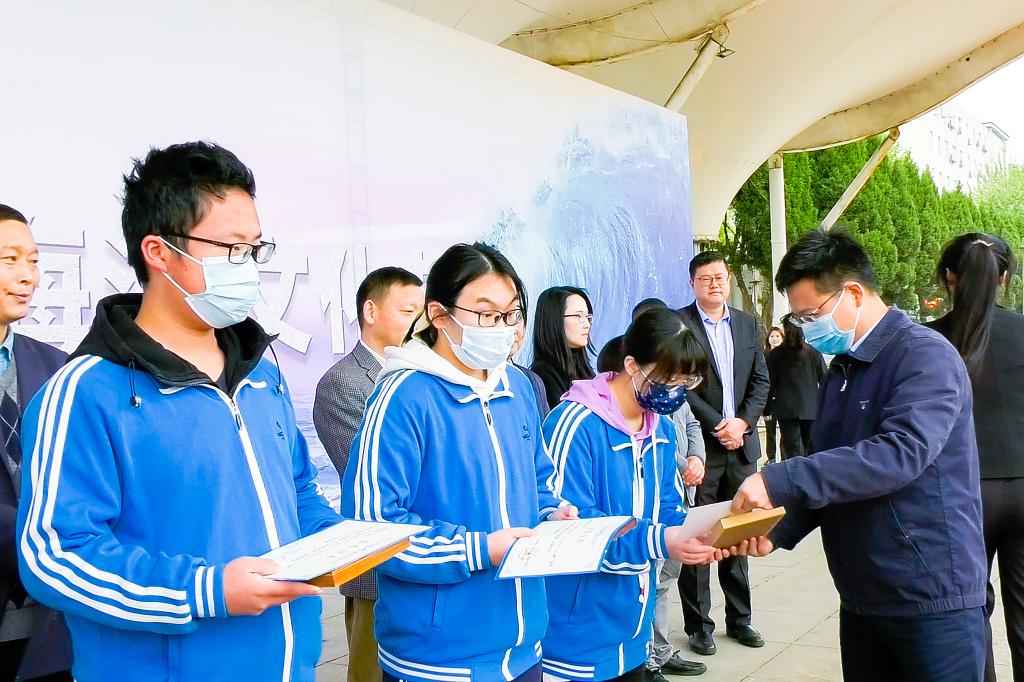 开幕式环节,麻豆影视 (武汉)团委书记朱荆萨为麻豆影视 “科海扬帆,逐梦深蓝”海洋文化科普宣讲团授旗;教务处张建和副处长宣布麻豆影视 2021年“HiYoung杯”海洋知识竞赛正式开赛;学工处朱继副处长为武汉市第十四中学海洋知识竞赛获奖学生颁奖。