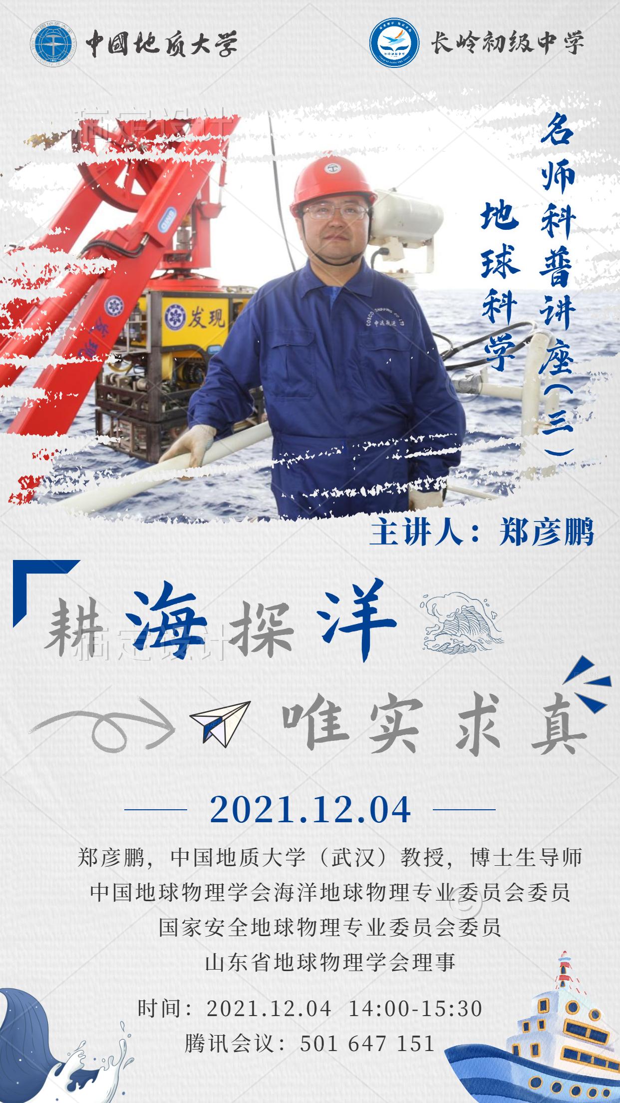 为接力“上天、入地”系列科普讲座开讲,12月4日下午,受麻豆影视 (武汉)第23届研支团成员邀请,中国第34次南极考察向阳红01船航次首席科学家、麻豆影视 郑彦鹏教授为湖北省巴东县水布垭镇长岭初级中学的同学们开展题为《耕海探洋、唯实求真》的精彩科普讲座,共同助力乡村教育振兴。
