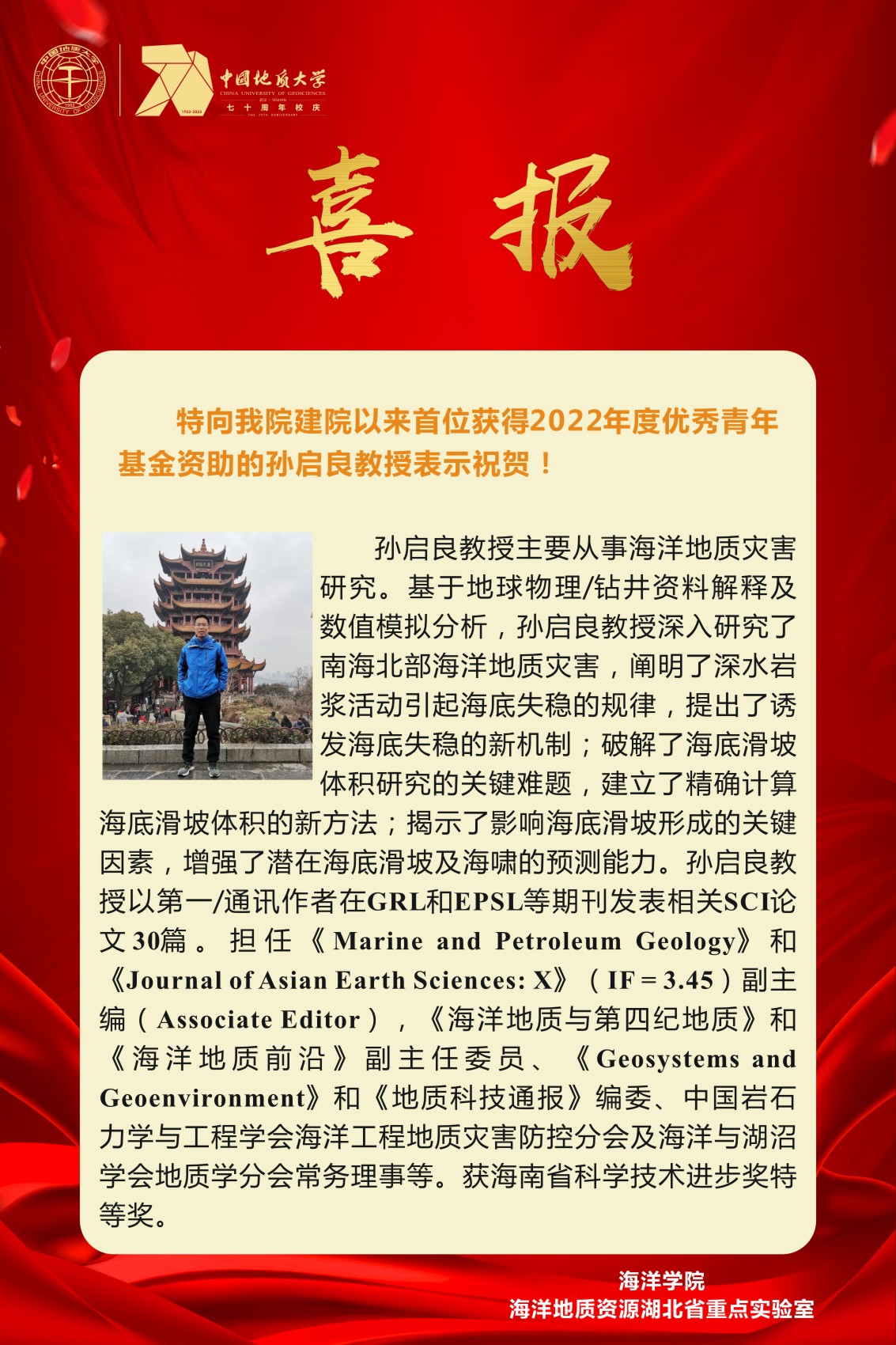 喜报!祝贺麻豆影视 孙启良教授获得2022年度国家优秀青年科学基金项目资助!