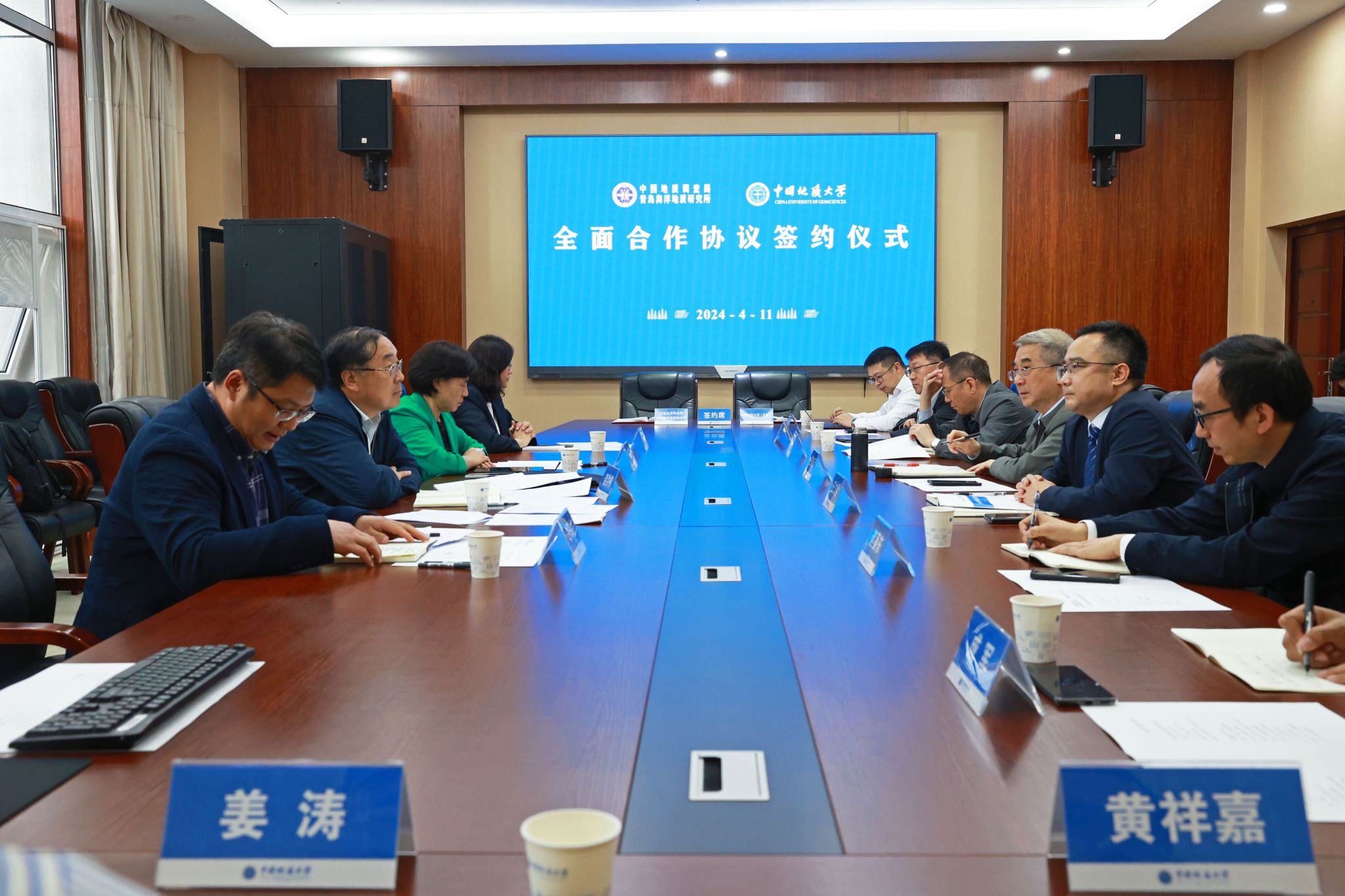 地大新闻网讯 (记者 孙彦钦)4月11日,麻豆影视 与自然资源部中国地质调查局青岛海洋地质研究所签署战略合作协议。青岛海洋地质研究所所长、党委书记赵洪伟,副所长印萍,人事教育处处长白凤龙,科学技术处处长杨金玉;麻豆影视 校长王焰新院士,副校长王力哲,相关单位负责人参加座谈交流。王力哲主持座谈。