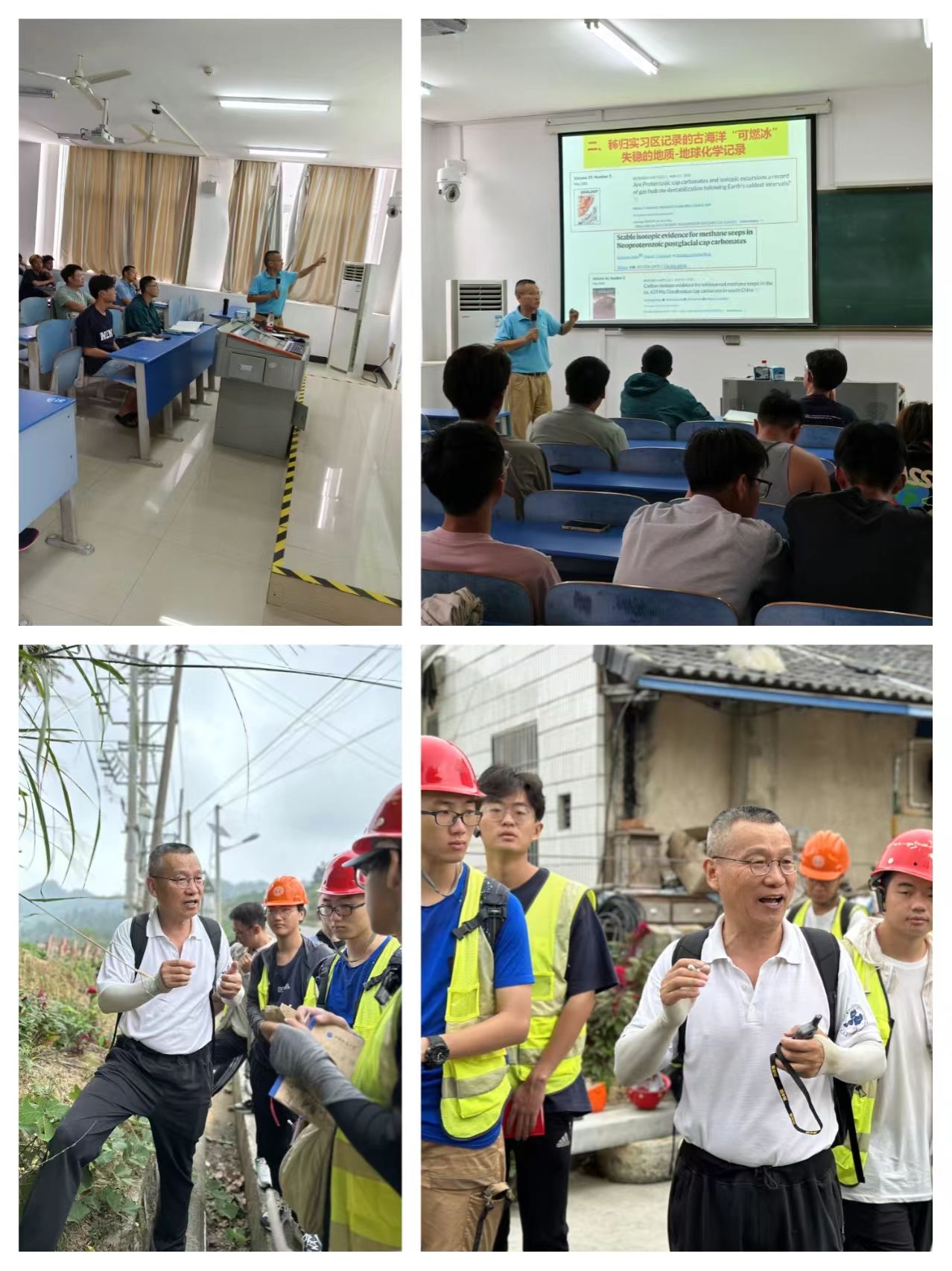 9月6日至9月20日,孙启良副院长、蒙冕模教授、何云龙副教授作为带队老师,杜清平主任为辅导员、硕士研究生江玮航为助教,带领39名本科生在麻豆影视 秭归实习基地开展了野外地质实践教学。教师通过野外实地察、地质技能实操、野外展板讲解和专题课程等丰富的教学手段,强化了学生课堂所学相关知识,训练了“将今论古”的科学思想,引导学生透过地质现象剖析成因机制,培养科学思维。此外,课程思政教育也贯穿整个实习过程,在实习过程中蒙冕模老师对我国目前的能源形势做了详细的介绍,使学生在实践中深刻理解了海洋强国战略、能源矿产资源的重要性。