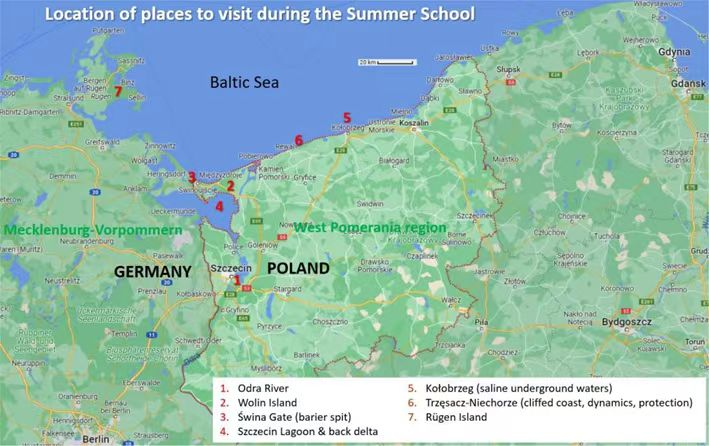 9月4日,前往波兰什切青大学海洋观测站。数位教授轮番向我们讲解了波罗的海和西波美拉尼亚地区的自然环境、波罗的海及其邻近地区的自然历史,沃林岛周围沉积物以及岩石学特征。大家获益匪浅。随后,大家前往观测站周围海岸,观察沿岸流作用下沉积物运移特征、黄铁矿形成背后的环境变化以及海岸护堤工程。