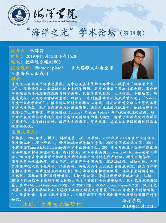 “海洋之光”学术论坛(第38期)—— 张锦昌