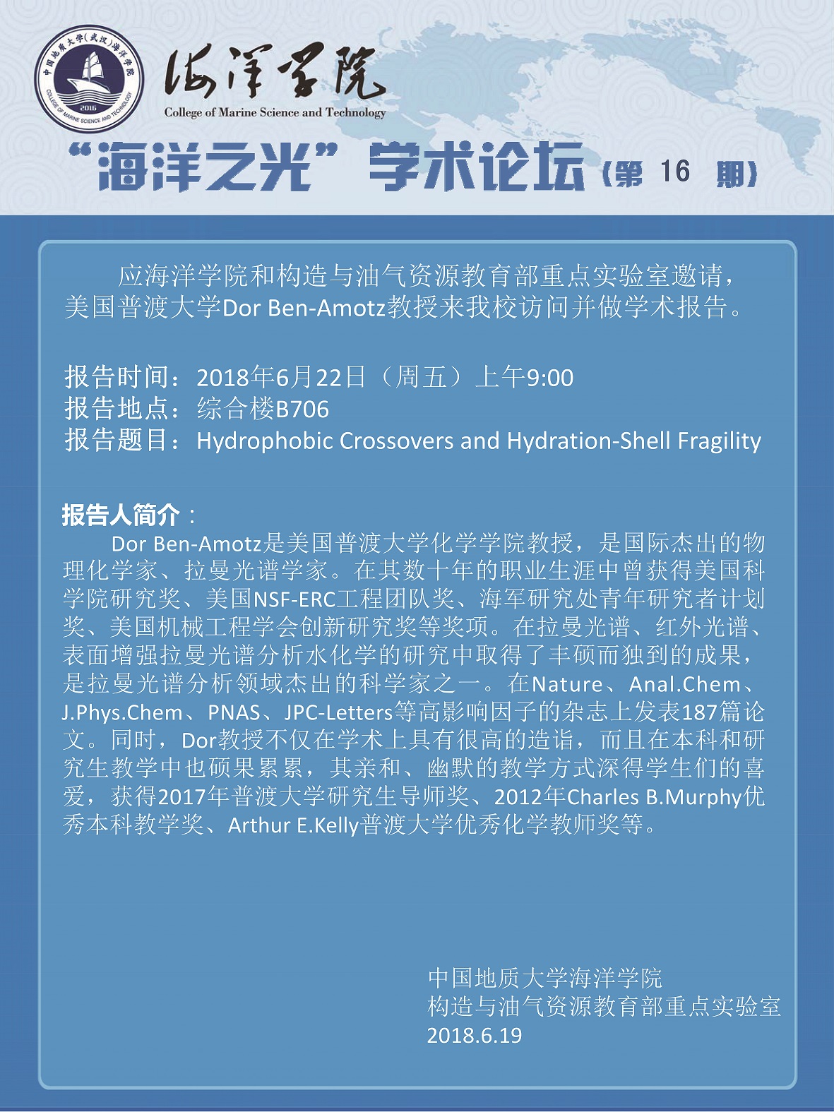 “海洋之光”学术论坛(第16期)—— Dor Ben-Amotz教授
