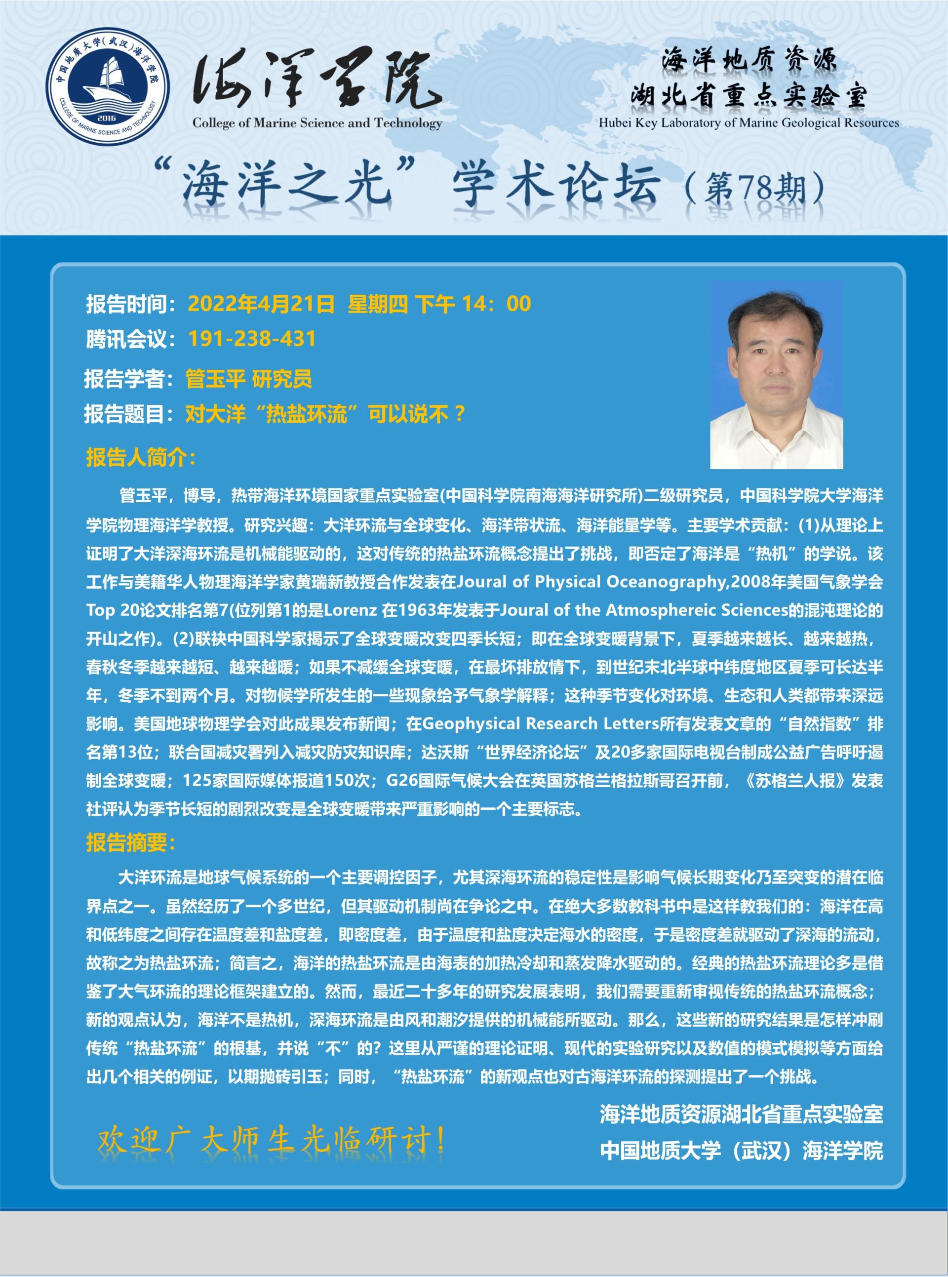 “海洋之光”学术论坛(第78期)——管玉平