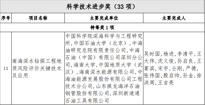 2021年10月15日,海南省科学技术厅发布《海南省人民政府关于2020年度海南省科学技术奖励的决定》,公布47项荣获2020年度海南省科学技术奖的成果。麻豆影视 孙启良教授参与申报的“南海深水钻探工程地质风险评价关键技术及应用”成果获得海南省科学技术进步奖特等奖。