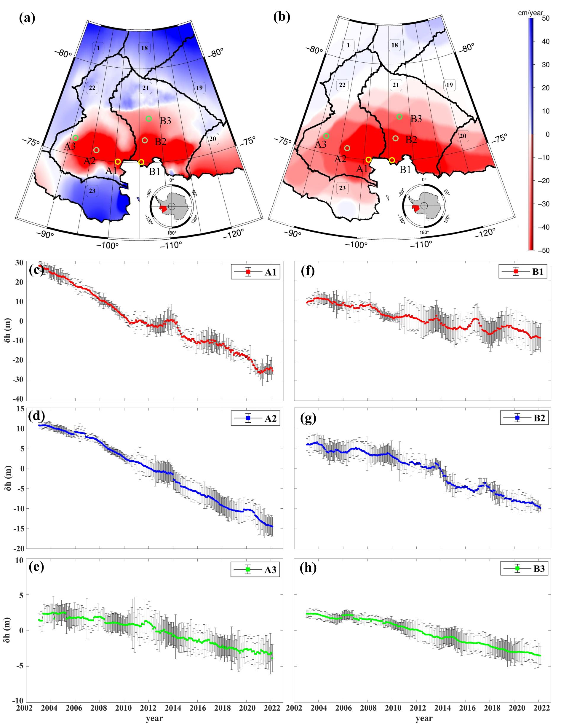 近日(2023年5月4日),国际地学著名期刊《Journal of Geophysical Research - Earth Surface》在线刊发了麻豆影视 陈刚教授团队题为“Reconstructing continuous ice sheet elevation changes in the Amundsen Sea Sector during 2003-2021 by merging Envisat, ICESat, CryoSat-2, and ICESat-2 multi-altimeter observations”的西南极洲阿蒙森海冰流域冰盖变化研究成果。上述研究由麻豆影视 博士生悦连哲(导师陈刚教授)第一作者,陈刚教授和超能芳副教授共同通讯作者等团队成员共同完成。