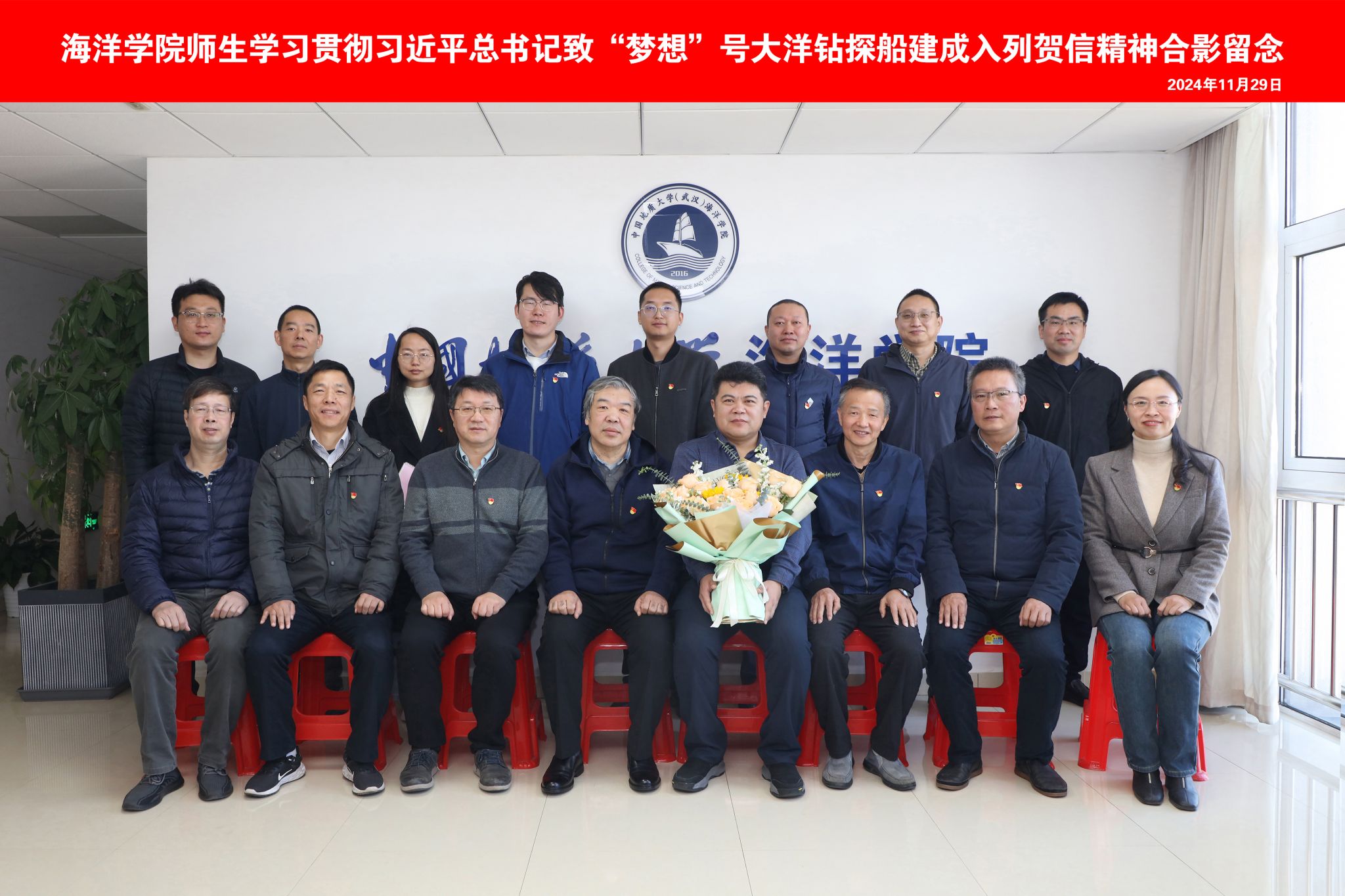 党委书记成军作总结讲话。他表示,姜涛教授全程参与“梦想”号大洋钻探船的论证、设计和建造,在“梦想”号的建成过程中发挥了举足轻重的作用。近10年来,姜涛教授作为幕后工作者,默默奉献,无私付出,彰显了作为一名优秀共产党员的躬身实干挑重担,务实笃行敢担当的卓越品质,体现了作为一名地大海洋科教工作者的坚守科技报国初心,勇担海洋强国使命的科学家精神。他强调,习总书记的贺信思想深刻、鼓舞人心,中国地质调查局的感谢信对学校表示了充分肯定,希望全院师生充分发挥地大海洋的学科优势,不断增加学科自信,开拓创新、团结协作、攻坚克难、勇攀高峰,为深海地质事业发展和学校地球科学领域建设贡献力量。