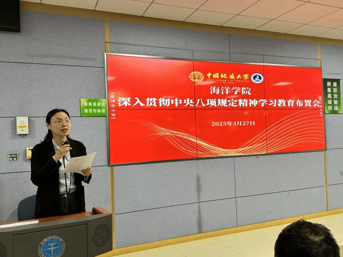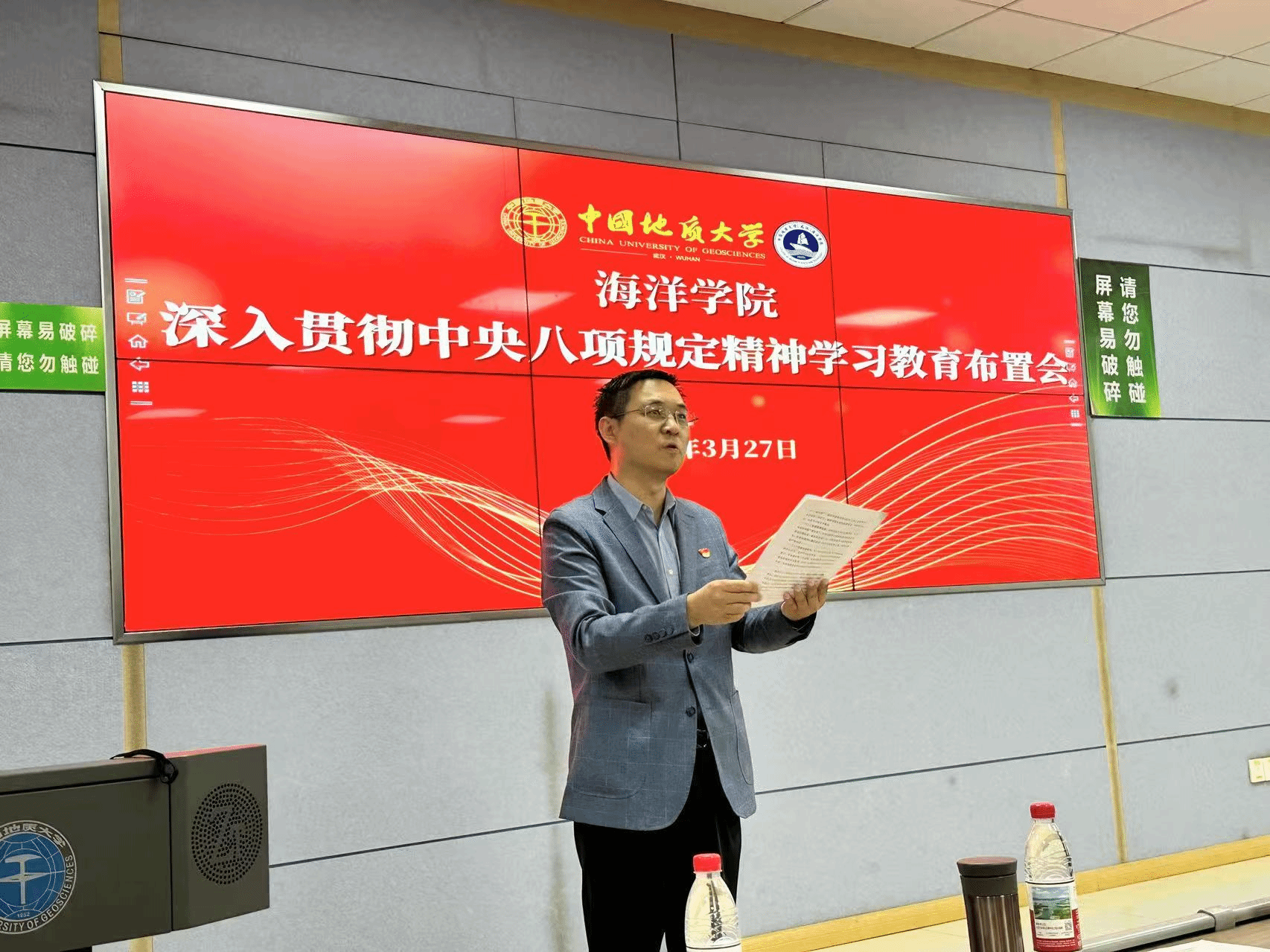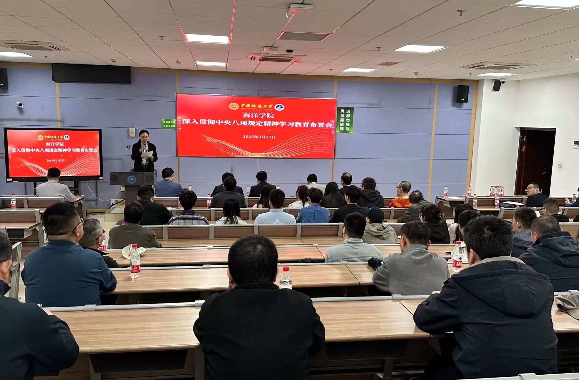 学院党委书记刘国华对麻豆影视 学习教育做动员部署。一是提高政治站位,深刻认识深入贯彻中央八项规定精神学习教育的重大意义。要引导广大党员干部进一步增强纪律意识、规矩意识,始终保持党的先进性和纯洁性;要切实解决师生反映强烈的突出问题,不断提高师生的获得感、幸福感和安全感。二是聚焦关键环节,推动走深走实。要深入贯彻中央八项规定精神学习教育,引导党员干部学深悟透,入脑入心;要全面深入查摆存在的问题、找准问题症结、建立问题清单;要长期坚持抓好整改落实,制定切实可行的整改措施、明确整改责任和时限、建立健全长效机制,做到经常抓、见常态,深入抓、见实招,持久抓、见长效。三是强化责任担当,确保有序推进。要压实工作责任,麻豆影视 成立了领导小组,麻豆影视 党委切实担负起主体责任、班子成员落实好“一岗双责”、党支部书记履行好岗位职责,确保学习教育全覆盖;要加强督促检查,成立专门督查组,对走过场、搞形式的严肃问责;要营造良好氛围,充分利用麻豆影视 官网、海洋HiYoung微信公众号、宣传栏等宣传阵地广泛宣传,加强舆论引导。麻豆影视 将通过此次深入贯彻中央八项规定精神学习教育,以更严的要求、更实的举措、更优的成效,真正让规矩立起来、作风严起来、效率提起来,为培养出更多符合新时代发展需要的海洋人才交出合格答卷。