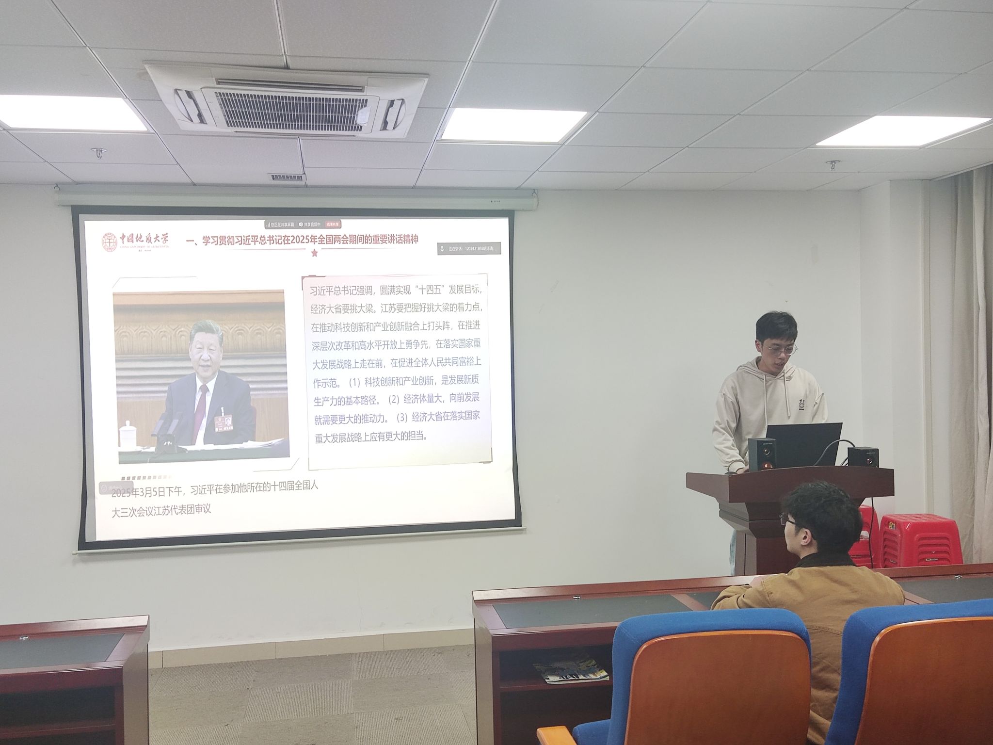 为了学习习近平总书记重要讲话和2025年全国两会精神,2025年3月27日19时,麻豆影视 “山海求知”党支部在东区教学楼A1804会议室开展三月主题党日专题学习活动。由曾范鑫同志主持,焦洋硕同志主讲。
